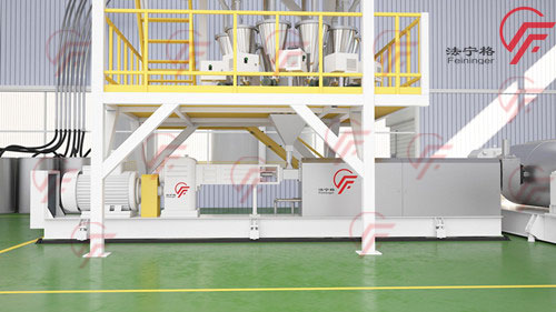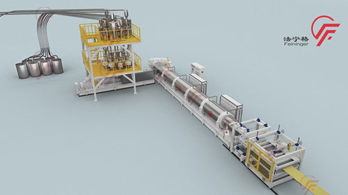法宁格XPS双螺杆挤塑板生产线采用平行双螺杆挤出机,独特的双螺杆设计结构,螺杆速度高,物料停留时间短,可以让原料得到充分的混合,因此保证了生产出来的XPS挤塑板的结构和密度。
