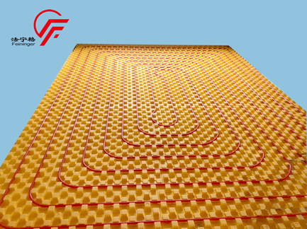 保温板表面抗压强度不小于250KPa,干式地暖模块的复合抗压强度将大于20t/m2,可满足各种地暖场合的需求,否则将存在地板局部松软甚至响声隐患。保温板抗压强度过大将降低地暖模块的保温性能。