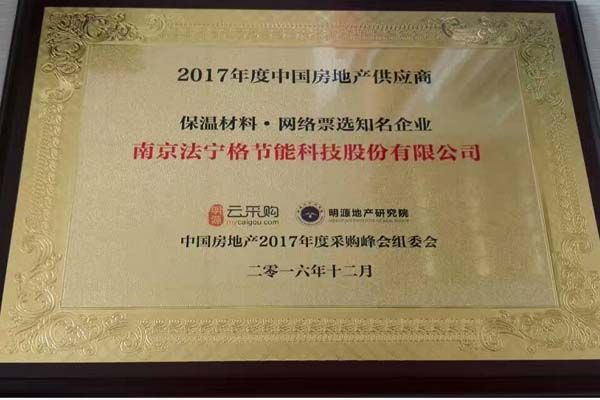 法宁格当选2017年度中国房地产供应商保温材料*网络票选知名企业